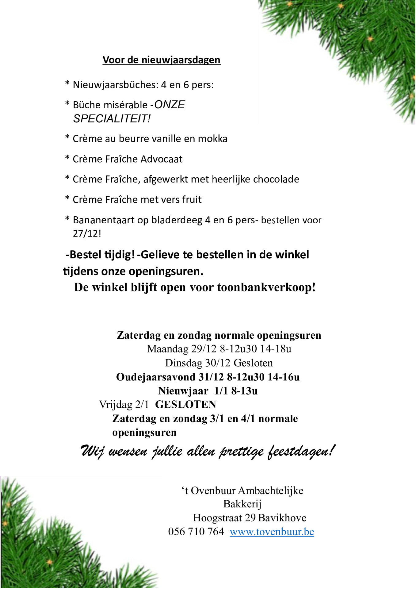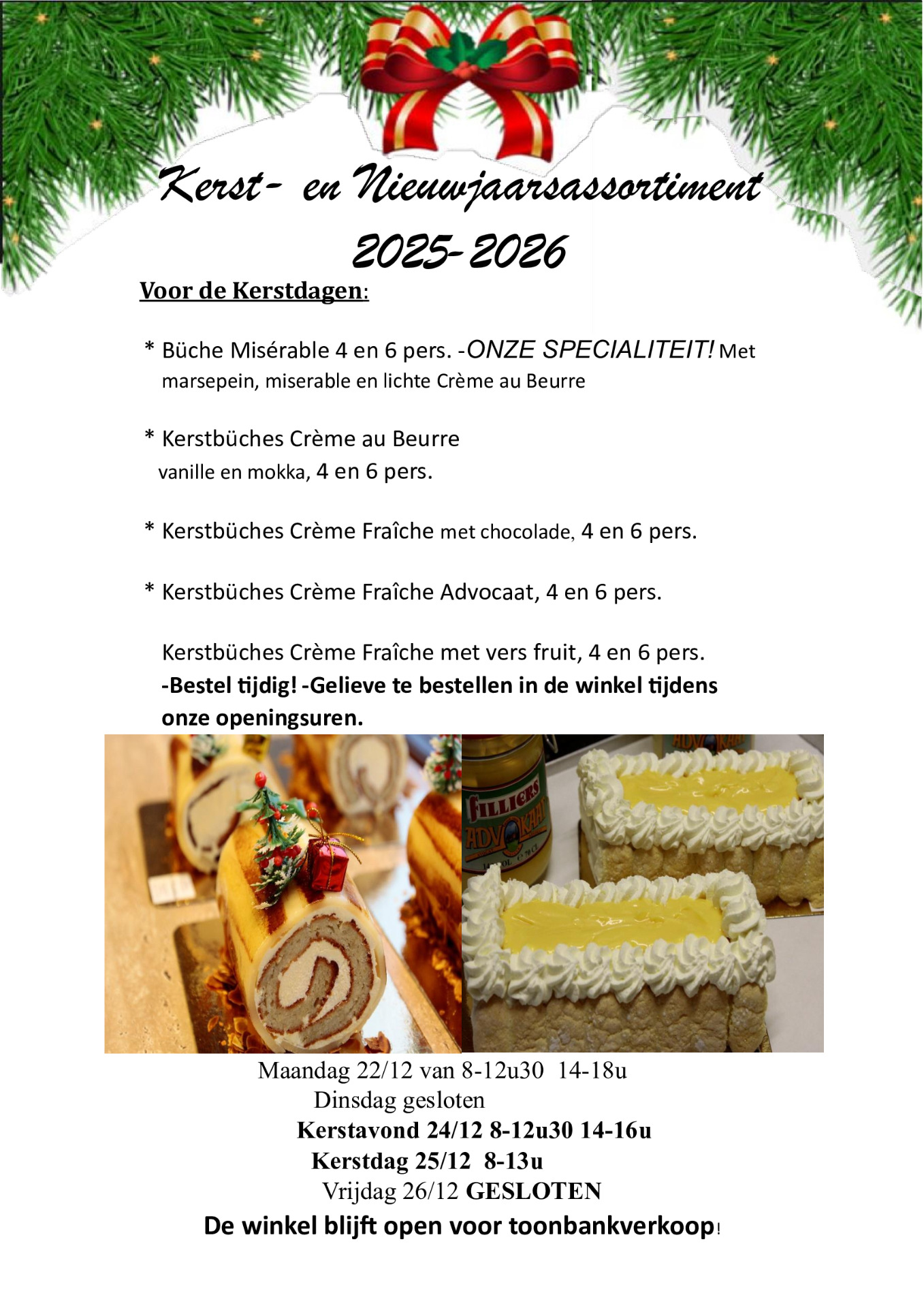 Gelieve tijdig te bestellen tijdens onze openingsuren, liefst in de winkel, alvast bedankt!